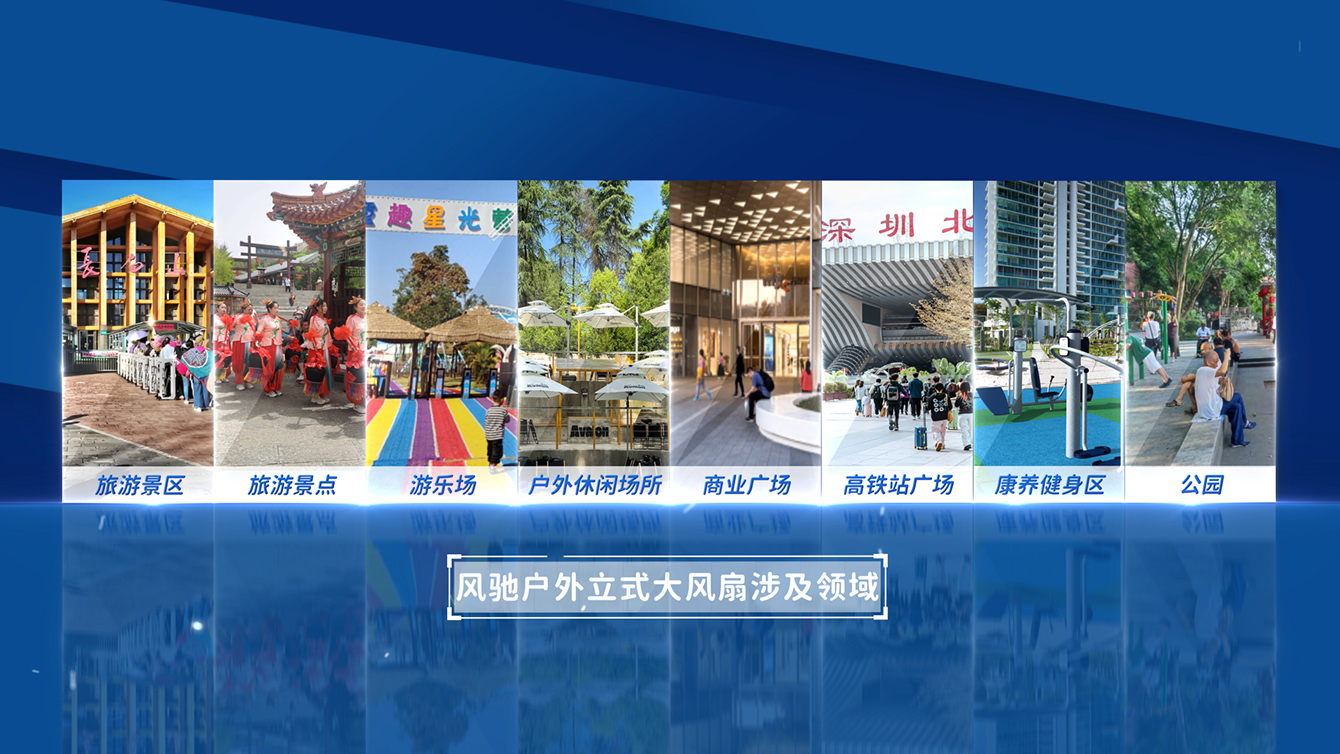 品牌型号:风驰系列 适用面积:户外覆盖300-500平米空间 适用场所:可用于旅游景区、旅游景点、游乐场、户外休闲场所、商业广场、高铁站广场、康养健身区、公园等大面积降温场所。