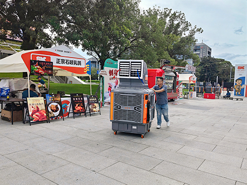 2.灵活实用是它的另一大优势。底部万向轮设计,让冷风机可轻松移动于露营地、展会摊位、游乐园排队区等多种场景,即插即用,无需复杂安装,彻底摆脱传统空调对固定场地的依赖。在某城市露营嘉年华中,数十台瑞泰风设备驻守关键区域,让排队人群告别闷热,舞台前的观众也能专注欣赏表演,活动整体好评率提升40%。